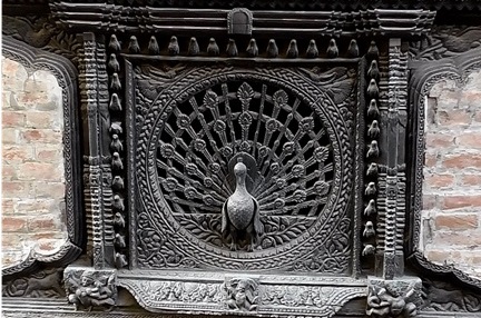 15世紀に作られた格子窓で、芸術品と名高い「ネワール建築の窓」の中でも、傑作として知られています。建物の壁の2階部分にあるんですが、目の前に土産物屋さんがあり、その2階に行くと正面から見ることができます。ダルバール広場~トゥマディー広場~クジャクの窓は、1kmくらいなので徒歩で全てアクセスできます\(^o^)/